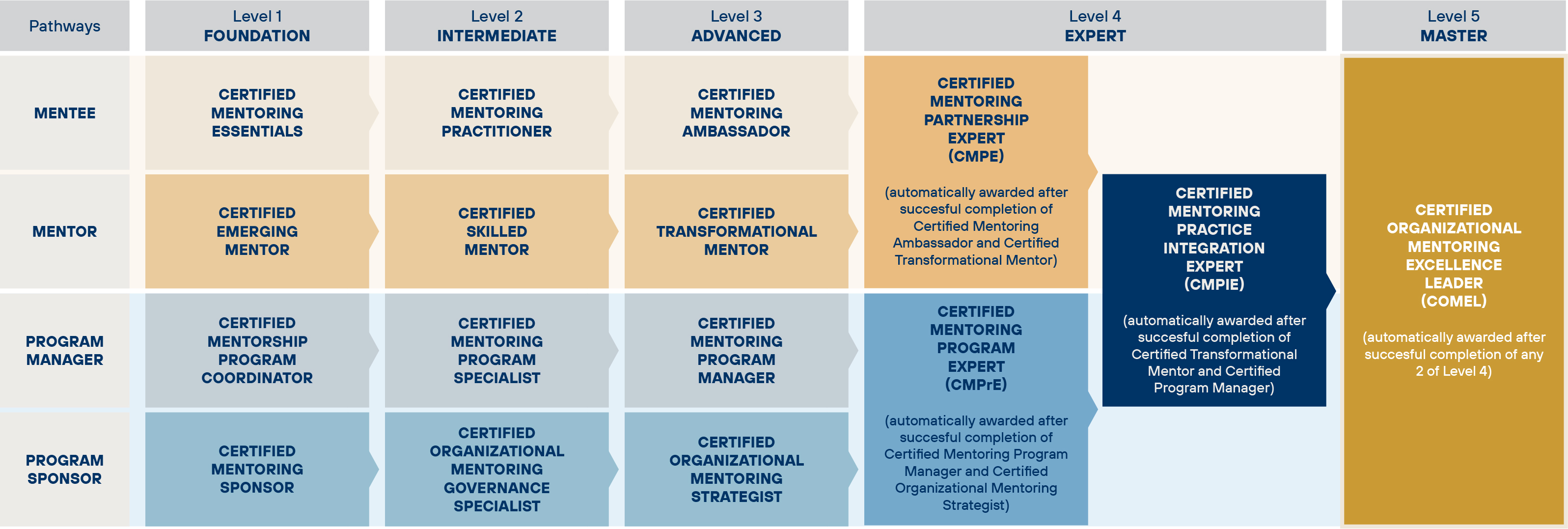 Each program is mapped to clearly defined competencies aligned with MentoringExpert certification standards. Progress is achieved by demonstrating mastery and expertise